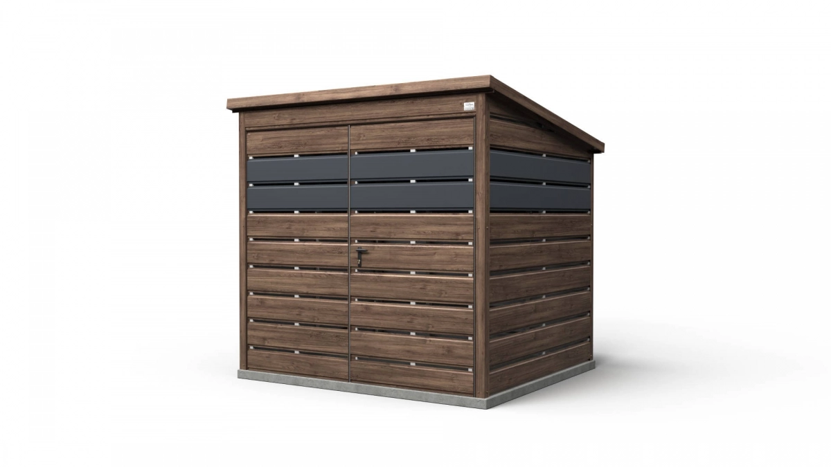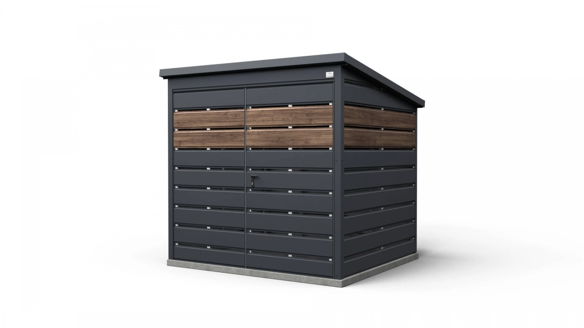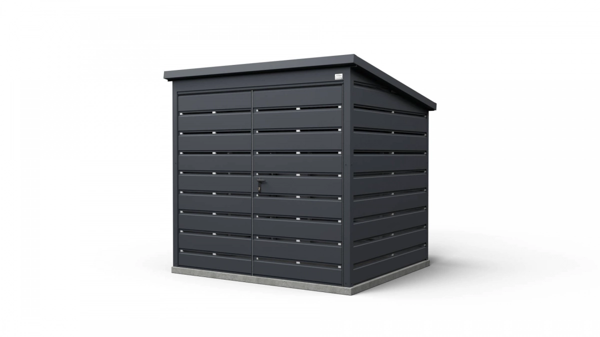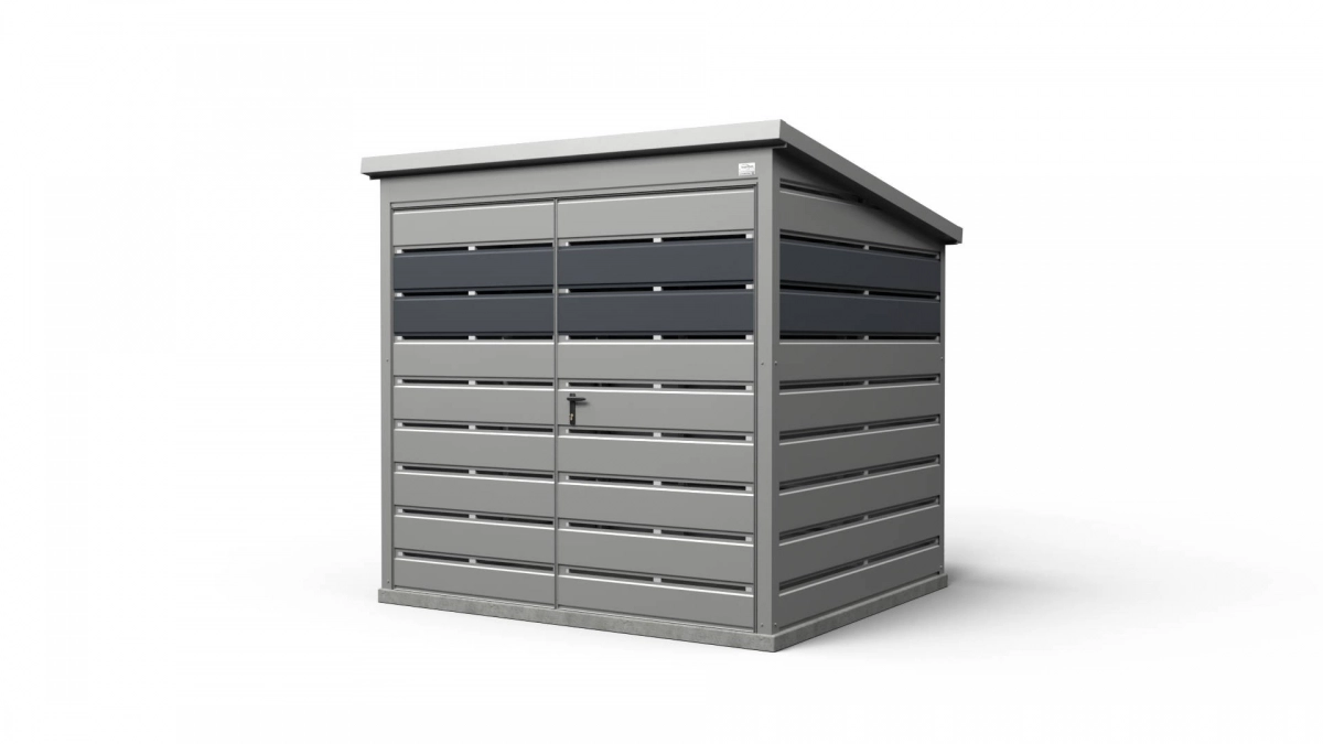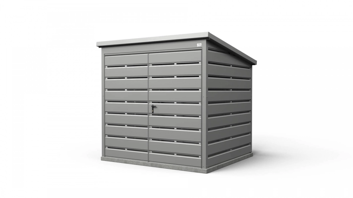 <p style="text-align:justify; margin:0cm 0cm 8pt">Afvalschuurtje met afmetingen <strong>2 m x 2 m</strong> van onze productie is een moderne en esthetische manier om afvalcontainers op te bergen.</p> <ul> <li style="text-align: justify; margin: 0cm 0cm 8pt;">De afmetingen zijn afgestemd op afvalcontainers van 240 l of 1100 l, waardoor orde in het interieur wordt gegarandeerd.</li> <li style="text-align: justify; margin: 0cm 0cm 8pt;">Het brede poort (standaard 2 m, maar andere afmetingen zijn ook mogelijk) maakt het eenvoudig om de afvalcontainers in en uit te zetten.</li> <li style="text-align: justify; margin: 0cm 0cm 8pt;">Een enkel hellend dak (met helling naar achteren) vergemakkelijkt het verwijderen van sneeuw en het afvoeren van regenwater.</li> <li style="text-align: justify; margin: 0cm 0cm 8pt;">Stevige constructie is bestand tegen weersinvloeden en duurzaam. Gesloten, warmgewalst gegalvaniseerde profielen garanderen stijfheid, stabiliteit en een elegant uiterlijk.</li> </ul> <p style="text-align:justify; margin:0cm 0cm 8pt">Het schuurtje kan ook gebruikt worden als tuinschuur, fietsopslag of kleine berging (afsluitbaar met sleutel). Het kan worden geproduceerd volgens uw specificaties en in een door u gekozen kleur, zodat het nog beter bij de omgeving past.</p>