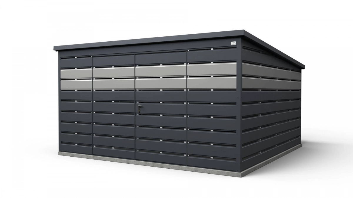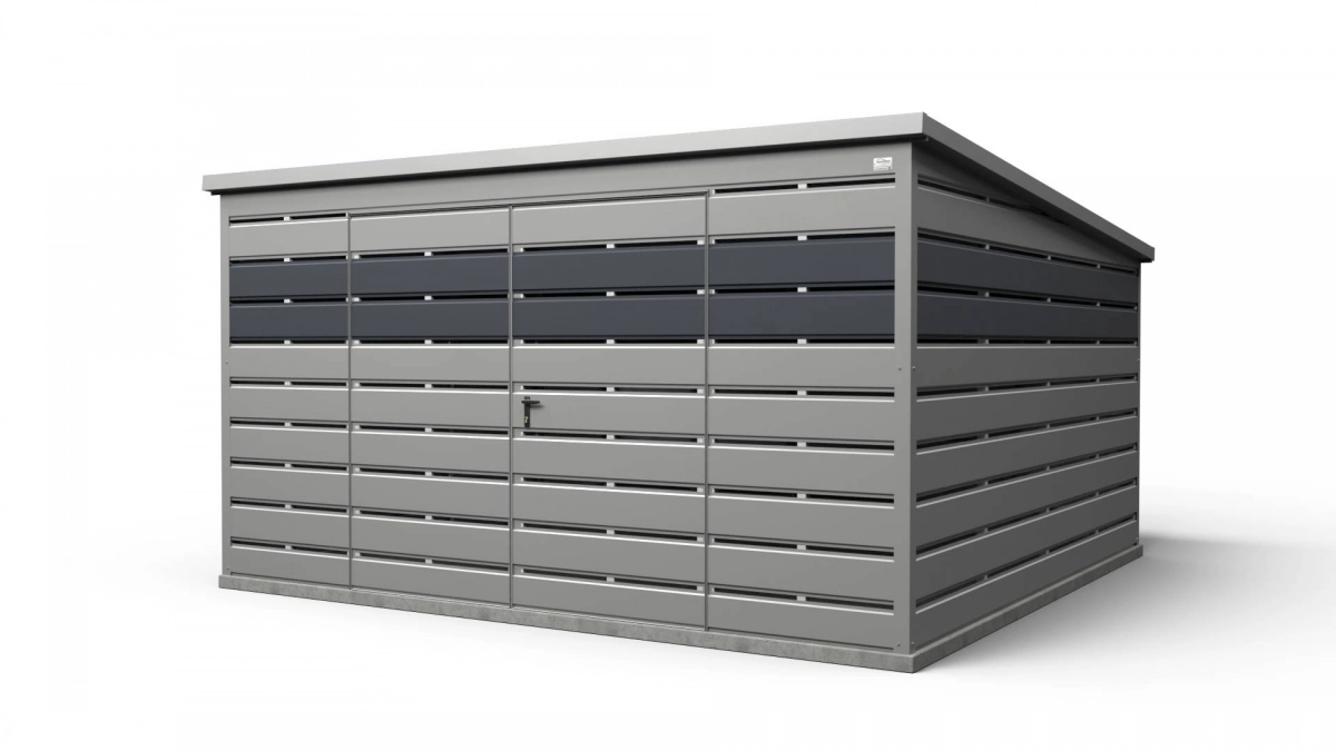 <p>Ons afvalschuurtje met afmetingen <strong>4 m x 4 m</strong> is de beste manier om de afvalbakken te organiseren!<br />