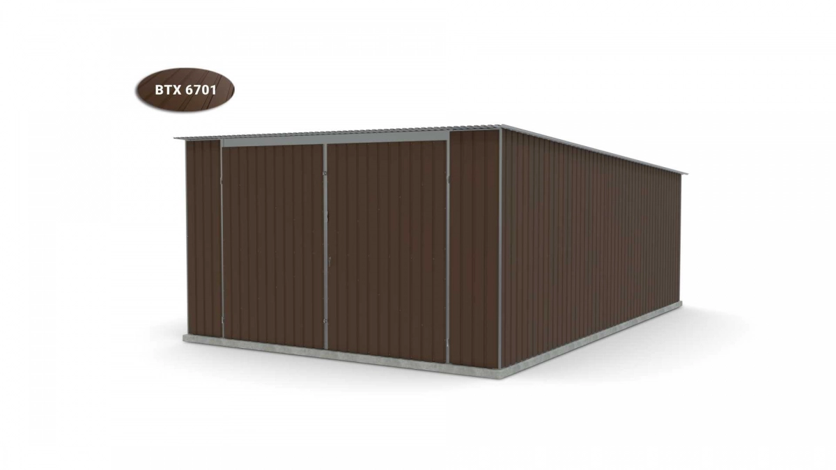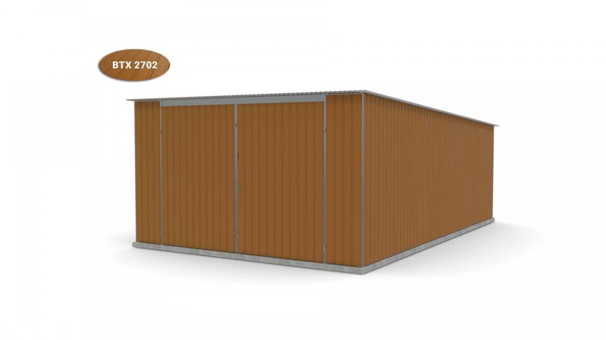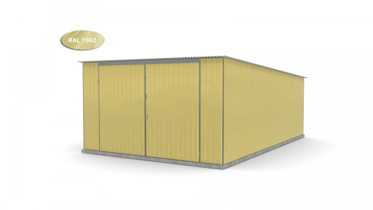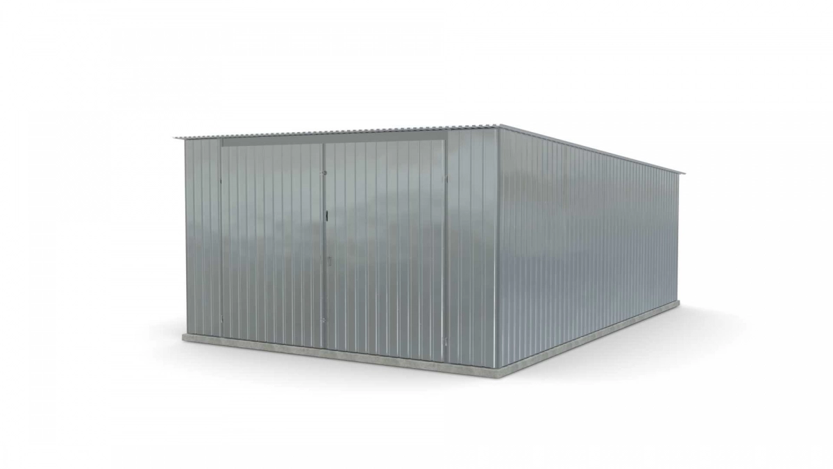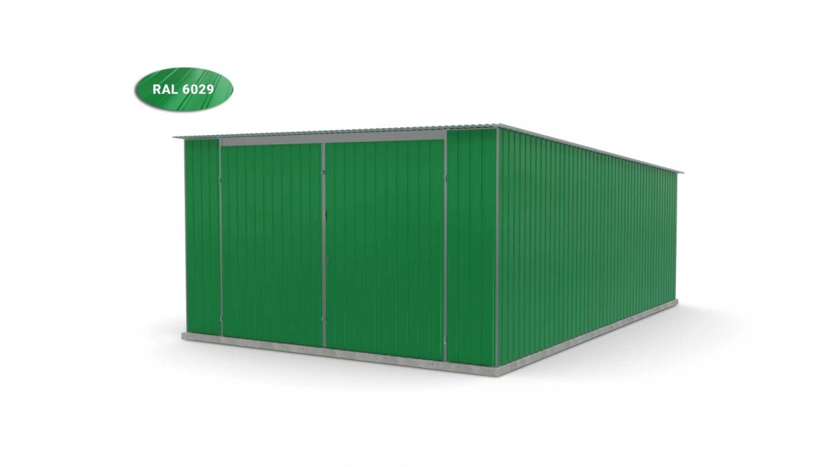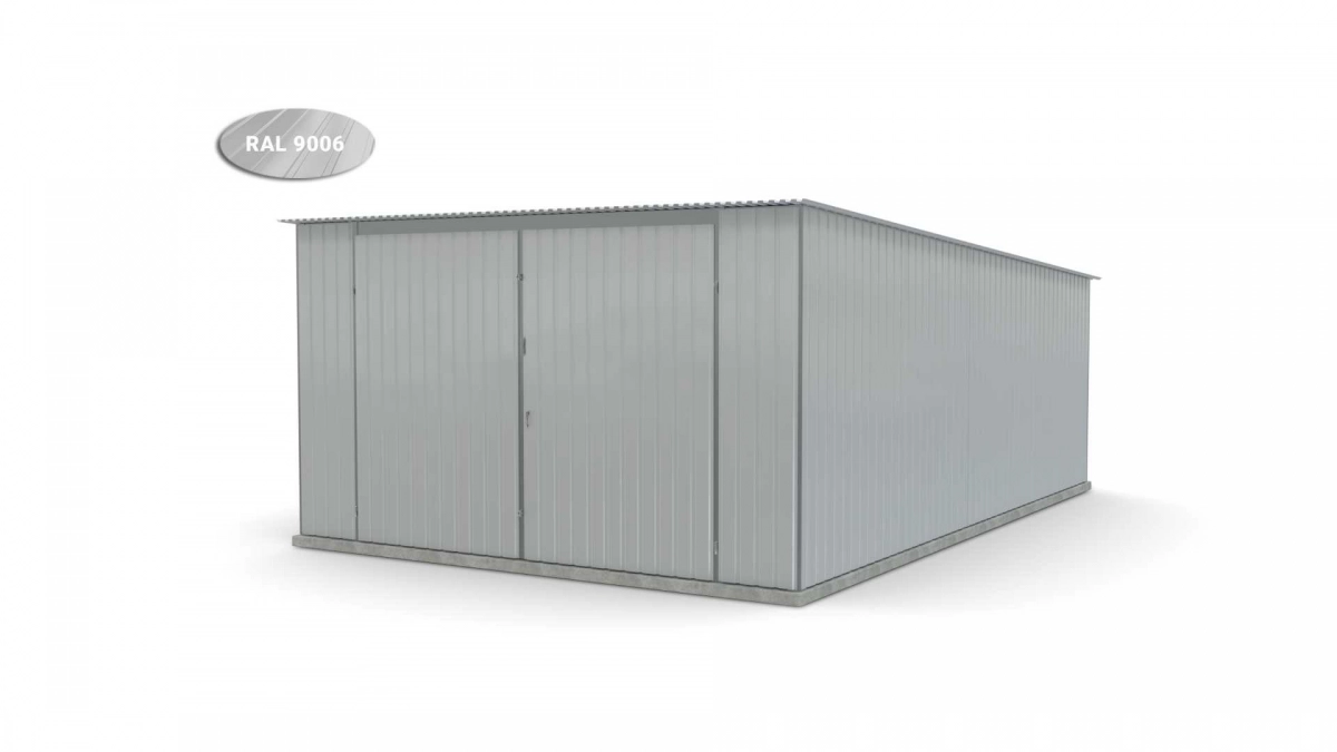 <p>Stalen garage met afmetingen <strong>4 m x 6 m</strong> met dubbele draaipoort en dakhelling naar achteren. De constructie is gemaakt van koudgevormde <strong>gegalvaniseerde</strong> hoekprofielen. De wanden van de garage zijn bedekt met gegalvaniseerd plaatstaal (trapeziumprofiel T-7), het dak is bedekt met gegalvaniseerd plaatstaal (trapeziumprofiel T-12). De platen worden met klinknagels aan de constructie bevestigd, terwijl de prefab elementen met bouten aan elkaar worden geschroefd. De garage is standaard uitgerust met een dubbele draaipoort met twee grendels en een cilinderslot met sleutel.</p>