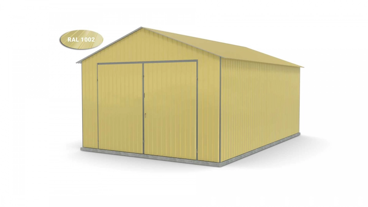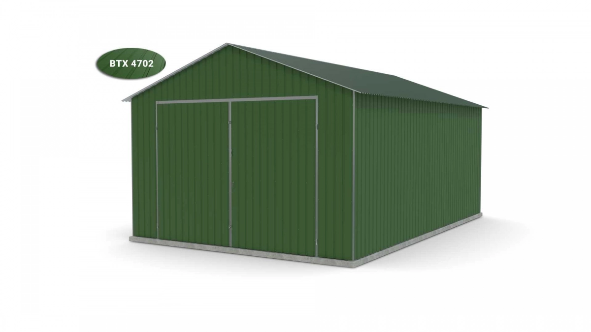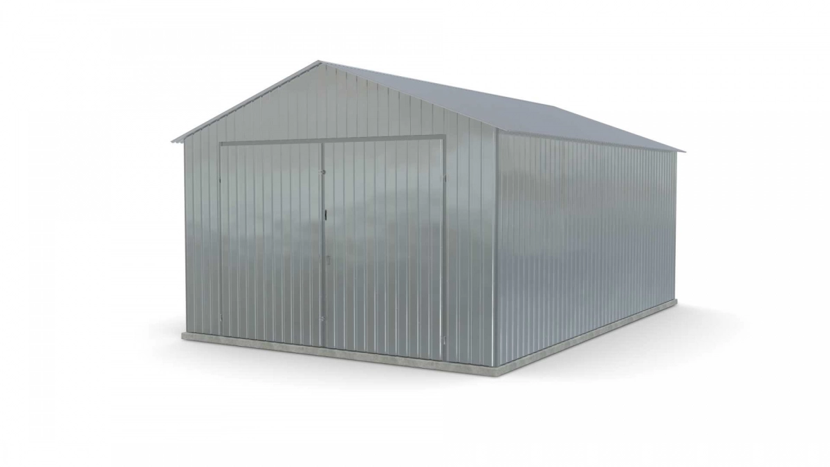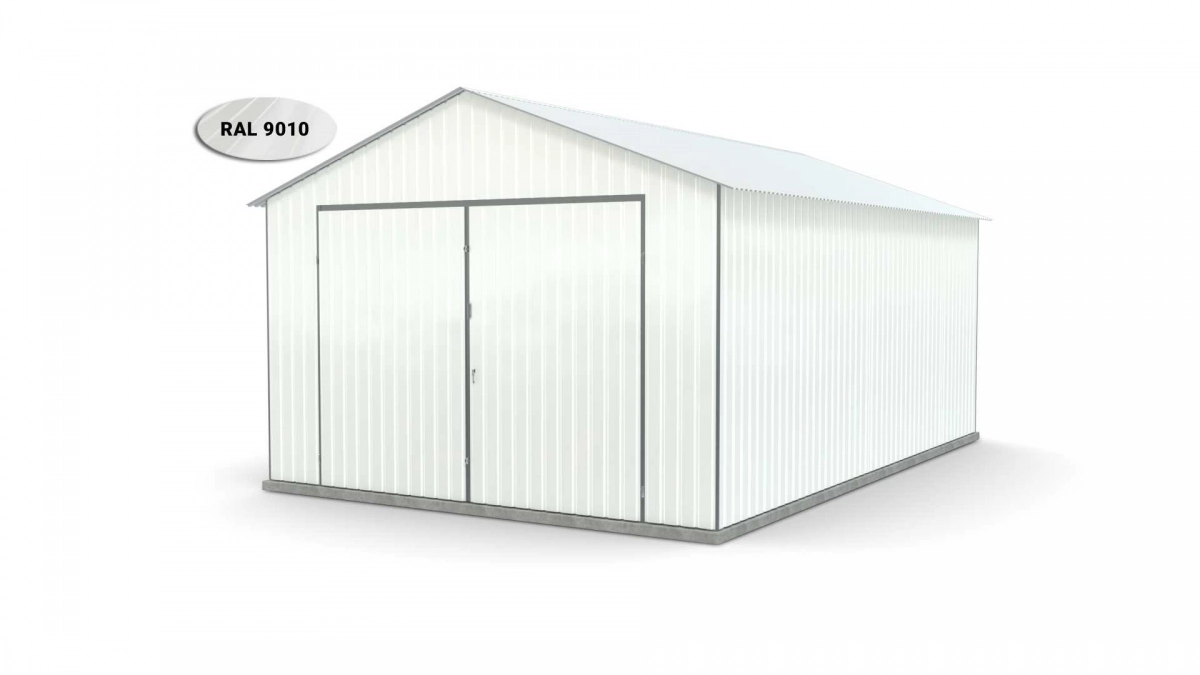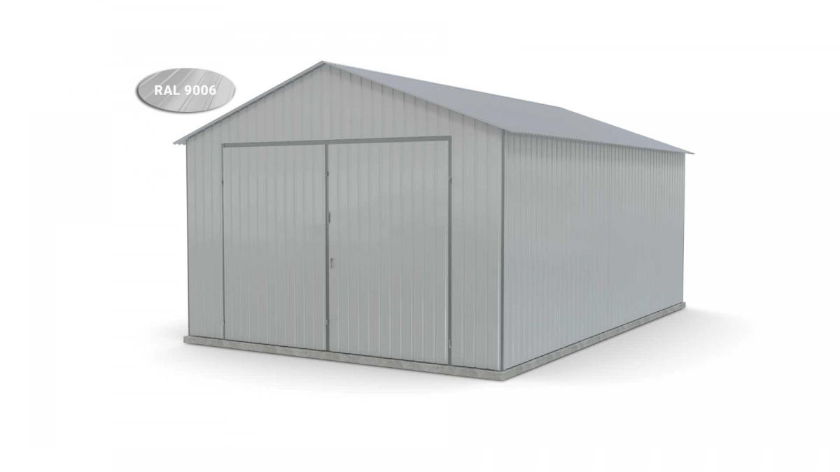 <p>Stalen garage met afmetingen <strong>4 m x 6 m</strong> met dubbele draaipoort en zadeldak. De constructie is gemaakt van koudgevormde <strong>gegalvaniseerde</strong> hoekprofielen. De wanden van de garage zijn bekleed met gegalvaniseerde plaatstaal (trapeziumprofiel T-7), terwijl het dak is bedekt met gegalvaniseerde plaatstaal (trapeziumprofiel T-12). De plaat wordt met klinknagels aan de constructie bevestigd, terwijl de prefab elementen met bouten aan elkaar worden geschroefd. Standaard is de garage uitgerust met een dubbele draaipoort met twee grendels en een cilinderslot met sleutel.</p>